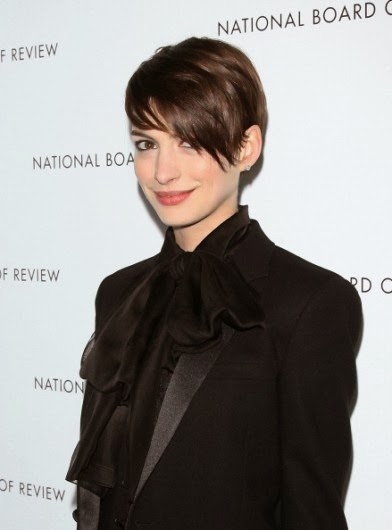 Vamos a empezar con uno más tranquilo, para ir calentando la pista. Anne Hathaway, que por cierto me encanta, me sorprendió bastante cuando se cortó el cabello, sé que fue por una película pero aún así no me la imaginaba con ese tipo de corte, pero la verdad le queda espectacular. Un corte moderno y muy usable.