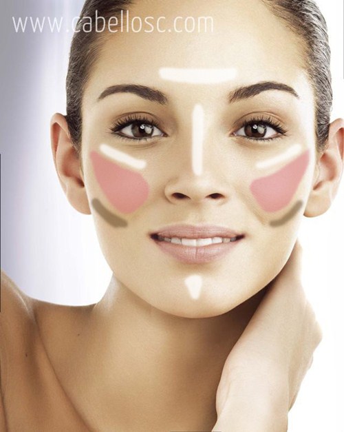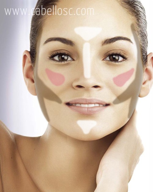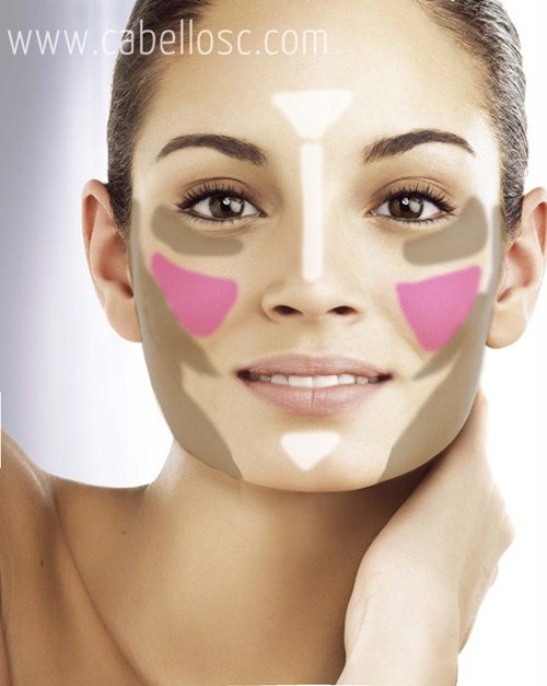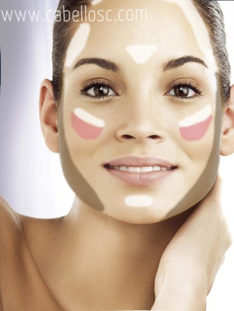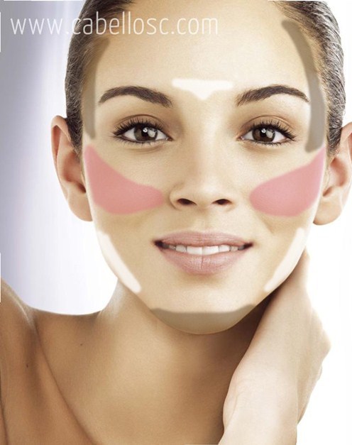 .- Oscurecer pómulos, desde la base de la oreja diagonal y descendente a la comisura de la boca. Aunque, se pueden resaltar los pómulos sutilmente, pero se busca la sensación de que son mas chicos.