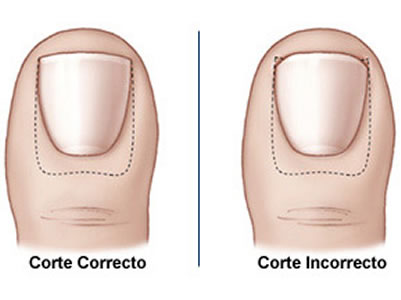 Lo ideal es que vayan al podólogo a que corte las uñas de sus pies, especialmente si su crecimiento tiene problemas (uñas encarnadas, levantadas o con hongos), pero obviamente no todas tienen los medios para hacerlo con la frecuencia necesaria. El corte debe ser recto y deben dejar unos milímetros por sobre el borde, es decir, debe quedarles algo de uña por sobre la unión con la piel de sus dedos, especialmente en los bordes. Si no lo hacen, favorecen que éstas crezcan deformadas y provoquen heridas e infecciones. Pueden pasar una lima para suavizar los bordes, cuidando mantener el corte recto.