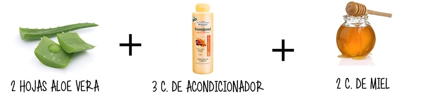 2 Hojas de Aloe Vera, 3 cucharadas de acondicionador y 2 cucharadas de miel.