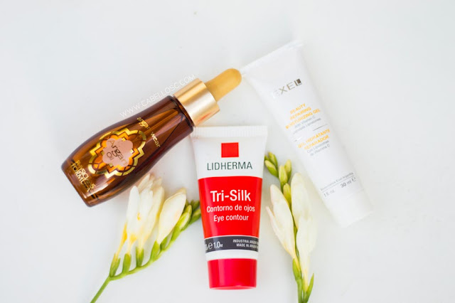 Luego de limpiar la piel, me aplico el Gel Hidratante Reparador con Liposomas de vitamina C de Exel, que no me está encantando, pero igual sirve para refrescar e hidratar. Luego, una vez que se me haya absorbido el gel, me aplico Aceite de Argán de la marca Physians Formula, que me encanta y cuando se me acabe no se que haré porque es maravilloso. Por último, me aplico el contorno de ojos Tri-Silk de Lidherma, y les digo que pocas veces sentí algo tan suave como la textura de este contorno, es seda pura y no exagero.