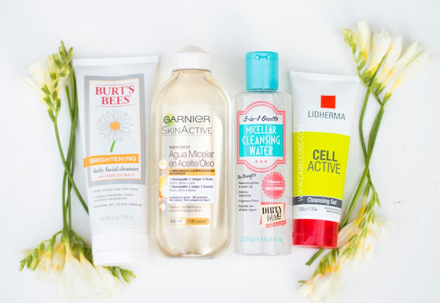 Comienzo limpiándome el rostro con el Agua Micelar de Garnier, que es excelente quitando el maquillaje. Deja residuo oleoso y para quitarlo uso el limpiador Brightening de Burts Bees que me deja la piel exquisita. Para quitar la máscara de pestañas uso el Agua Micelar de Dirty Works que es una real maravilla. Cuando siento mi piel muy cargada, oleosa, de vez en cuando uso el Cell Active de Lidherma porque es muy limpiador y si lo usara seguido me resecaría.