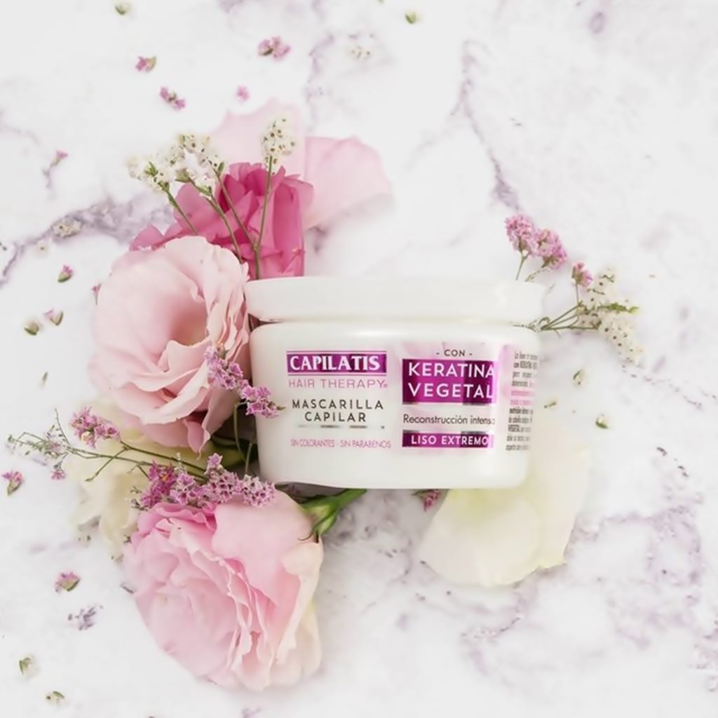 La exclusiva línea de tratamiento CAPILATIS HAIR THERAPY® CON KERATINA ha sido especialmente diseñada para recuperar la salud de las fibras capilares deterioradas. Esta mascarilla ofrece una nutrición intensa e inmediata, reparando daños severos en cabellos castigados y débiles. Su uso semanal garantiza la recuperación del cabello, devolviéndole el cuerpo y el brillo deseado. Además, es una gran aliada para controlar el frizz y prolongar los resultados del alisado.