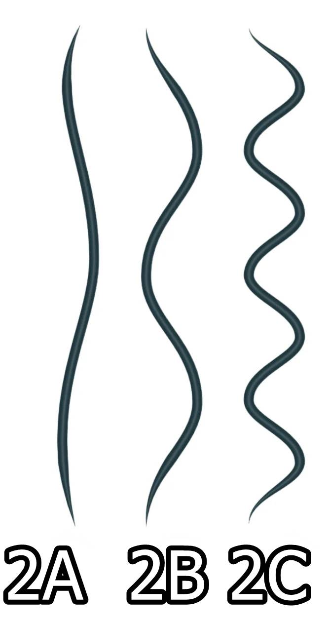 2B: Ondas más definidas que forman una 'S' más pronunciada desde la raíz hasta las puntas.