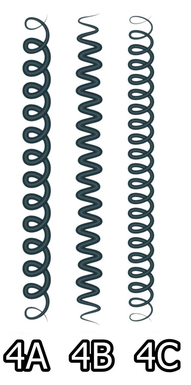 4B: Rizos en forma de 'Z' más definidos y con menos esponjosidad.