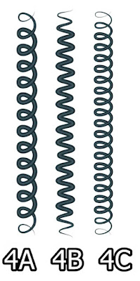 3B: Rizos más apretados y con una forma de espiral más definida desde la raíz.